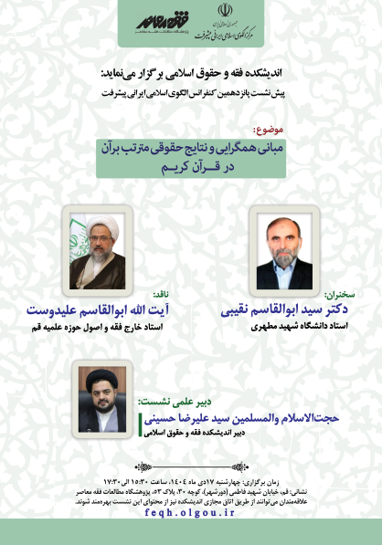 اندیشکده فقه و حقوق اسلامی، نشست علمی «مبانی همگرایی و نتایج حقوقی مترتب بر آن در قرآن کریم» را روز چهارشنبه ۱۷ دی‌ماه به‌عنوان پیش‌نشست پانزدهمین کنفرانس مرکز برگزار می‌کند.