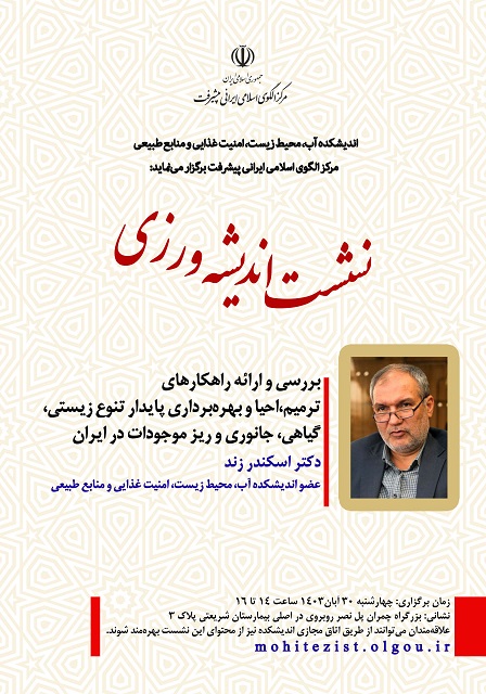 بررسی و ارایه راهکارهای ترمیم، احیا و بهرهبرداری پایدار تنوع زیستی، گیاهی، جانوری و ریز موجودات در ایران موضوع اندیشهورزی اندیشکده آب، محیط زیست، امنیت غذایی و منابع طبیعی در 30 آبان 1403 است. این نشست با سخنرانی جناب آقای دکتر اسکندر زند عضو اندیشکده آب، محیط زیست، امنیت غذایی و منابع طبیعی و استاد موسسه تحقیقات گیاه پزشکی کشور از ساعت 14 بصورت حضوری و مجازی (mohitezist.olgou.ir)برگزار میشود؛ علاقمندان جهت کسب اطلاعات بیشتر به پوستر این نشست مراجعه کنند.